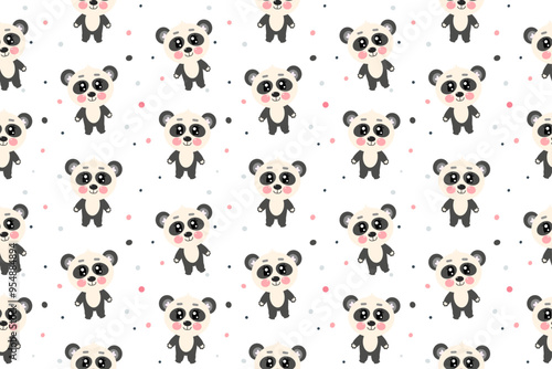 © Olga Voron, Obraz premium Seamless pattern with kawaii little cute sweet panda in full height for children on white background