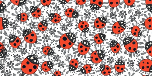 © Ulrich, Fototapeta premium seamless pattern with ladybugs