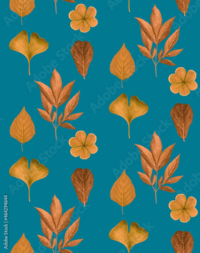 Fototapeta premium Seamless pattern with leaves. Forest background. Hand-drawn illustration, colored