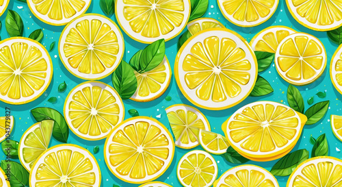 © SvitlanaKvet, Fototapeta premium Seamless pattern with lemon slices fruity summer background