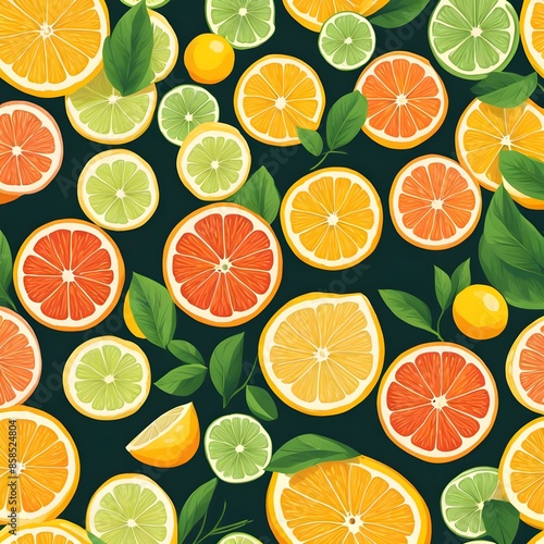 Fototapeta premium Seamless Pattern With Oranges, Citrus, Lime, Lemon Fruit Background