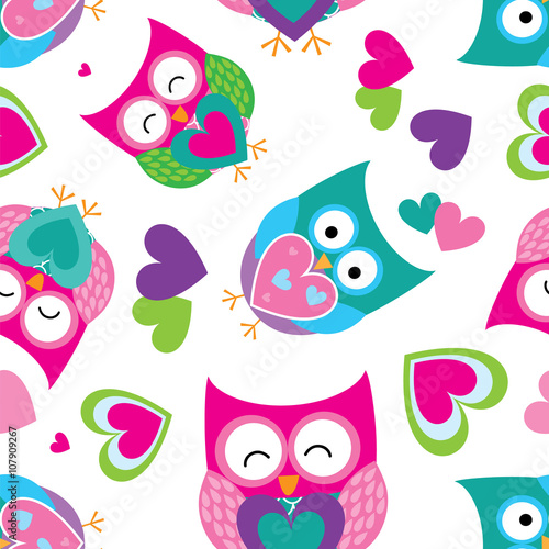 © mrartngm, Fototapeta premium Seamless pattern with owls design background