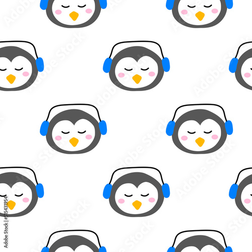 © Minur, Fototapeta premium Seamless pattern with penguin faces.