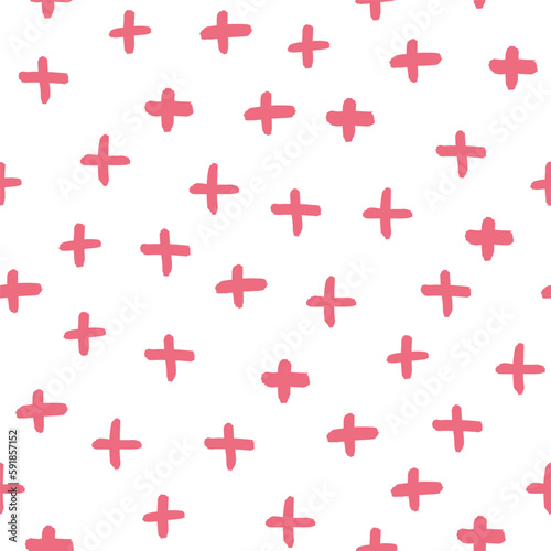 © FRESH TAKE DESIGN, Obraz premium Seamless pattern with pink handdrawn cross
