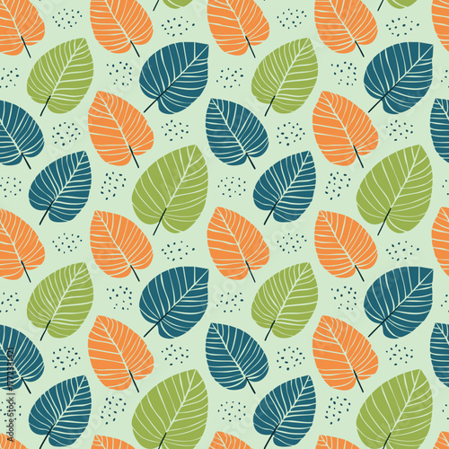 Obraz premium Seamless pattern with retro colorful leaves