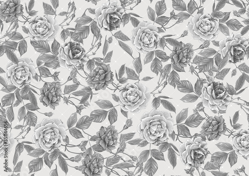 Fototapeta premium Seamless pattern with roses flowers. Vector illustration in monochrome gray...