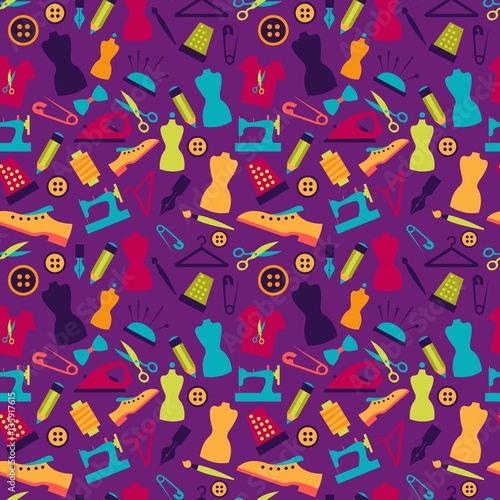Obraz premium Seamless pattern with sewing accessories