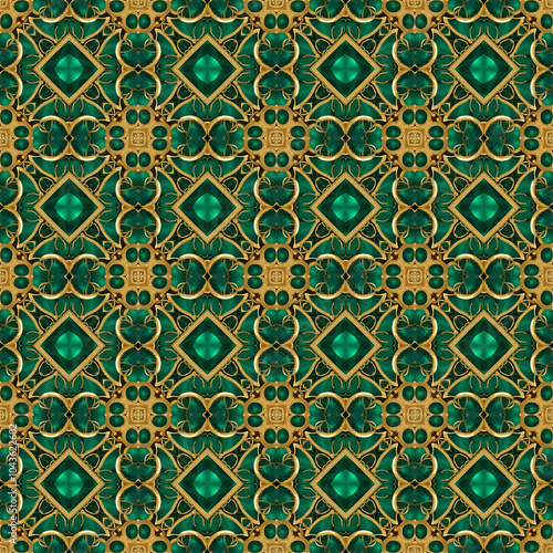 Obraz premium Seamless pattern with shapes. Seamless emerald gold pattern