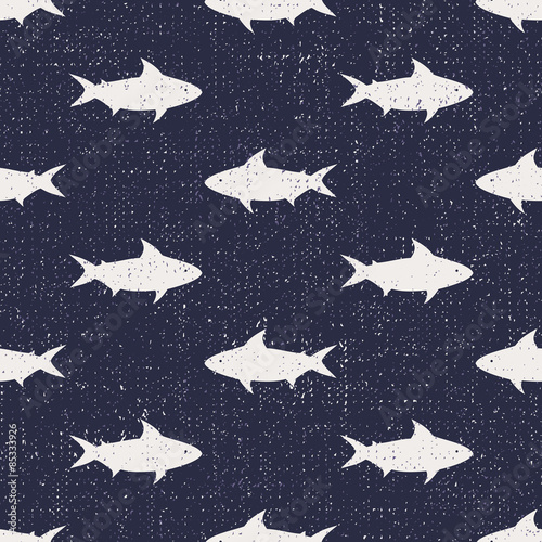 © in_dies_magis, Fototapeta premium Seamless pattern with sharks. Nautical background. Cute sea life illustration.