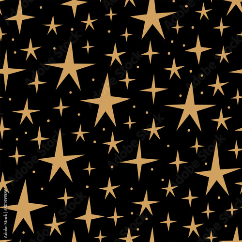 © Felizabeth, Obraz premium Seamless pattern with stars in boho style. Vector flat abstract background