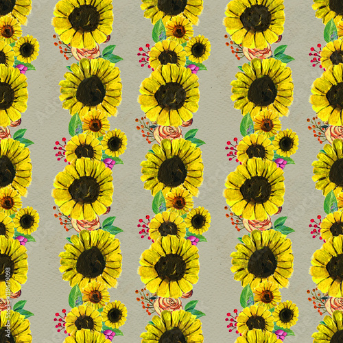 © lolya1988, Fototapeta premium Seamless pattern with sunflowers