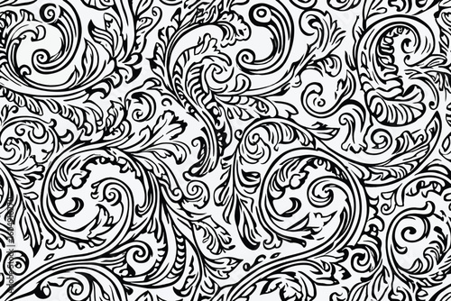 © Tanjil Hasnat, Fototapeta premium Seamless pattern with swirl shapes. White and black line background. Vector design ornament for paper, cover, fabric, interior decor, textile, wallpaper, surface design, label, packaging.