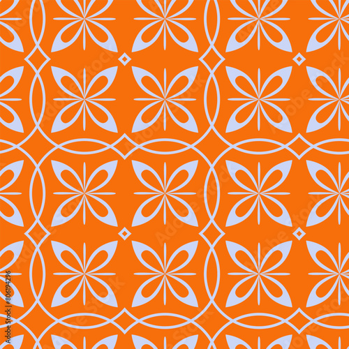 Fototapeta premium Seamless pattern with symmetrical elements on orange background. Oriental background