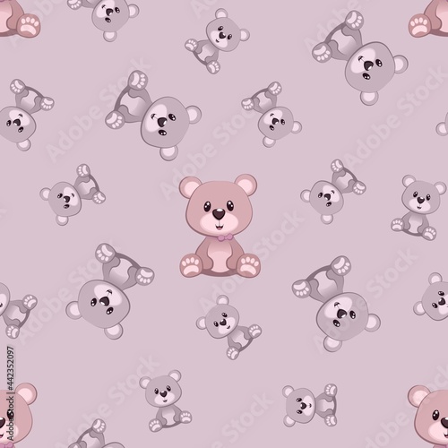 © Liudmila, Fototapeta premium Seamless pattern with teddy bears on pastel background. For children room, package, wrapping, print, fashion, accessories, textile, media, wallpaper.