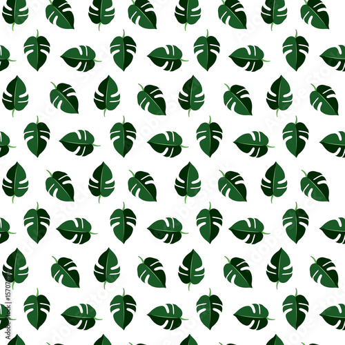 Obraz premium Seamless pattern with tropical leaves on a white background, vector