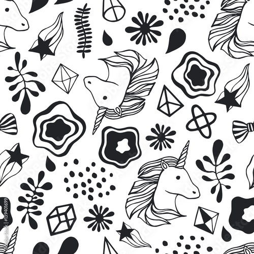 © Olga Skorobogatova, Fototapeta premium Seamless pattern with unicorns.