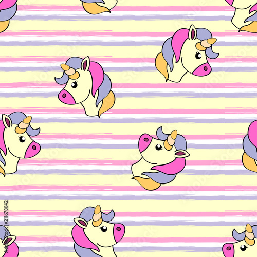 © alka5051, Obraz premium Seamless pattern with unicorns
