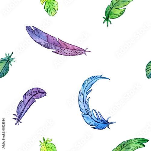 Fototapeta premium seamless pattern with watercolor feathers
