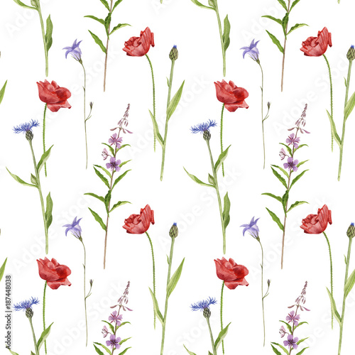 © cat_arch_angel, Fototapeta premium Seamless pattern with watercolor flowers