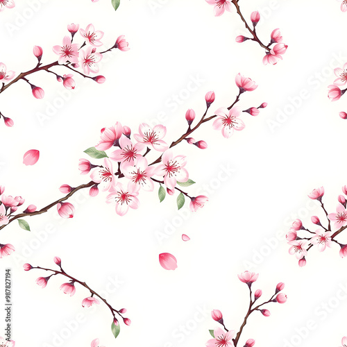 © wannasak, Fototapeta premium Seamless pattern with watercolor sakura flowers on white background
