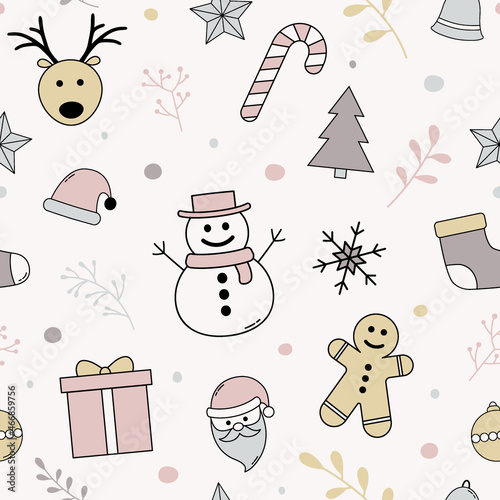 Naklejka premium Seamless pattern with Xmas elements. Christmas background. Vector