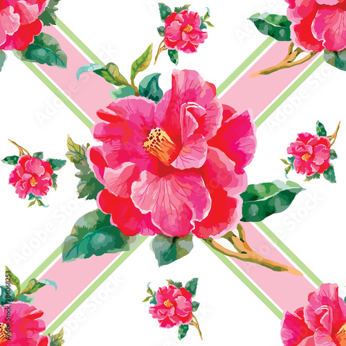 Obraz premium Seamless patterns with Beautiful flowers, watercolor illustration