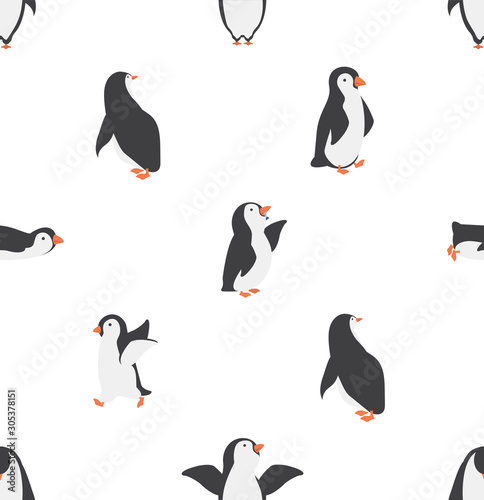 © focus_bell, Naklejka premium Seamless penguins characters vector pattern