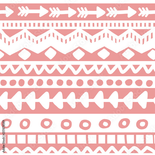 Naklejka premium Seamless pink and white geometric background. Ethnic hand drawn pattern for wallpaper, cloth, cover, textile