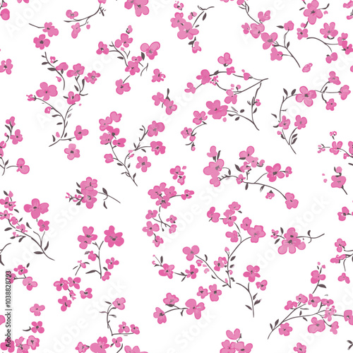 © Md Shawan, Fototapeta premium Seamless Pink Floral Pattern with Delicate Blossoms on White Background
