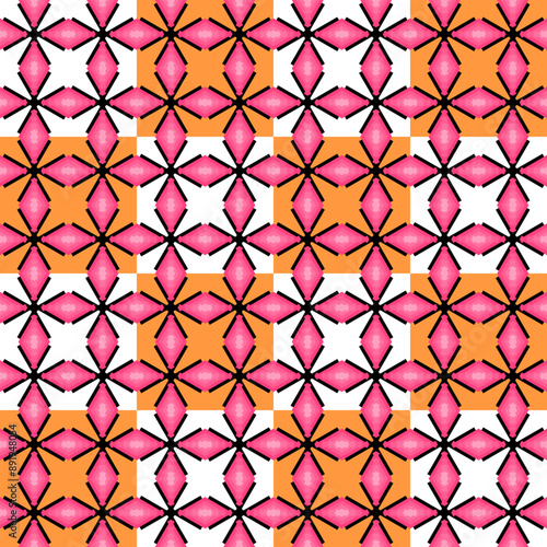 © Kanchana, Fototapeta premium Seamless pink flower background.Abstract flower backdrop.Simple background.Fabric pattern assembly vector.Flowers on a white background.Geometric flower illustration.Wallpaper pattern. grid backgroun.