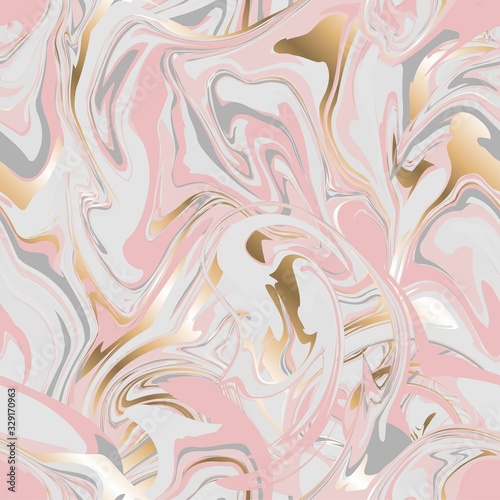 © lidiia, Naklejka premium Seamless pink stylized marble background with gold, stains of paint