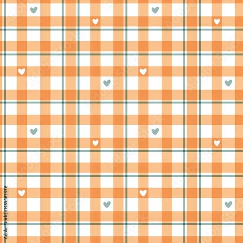 Obraz premium Seamless Plaid Pattern with Hearts in Orange and Green