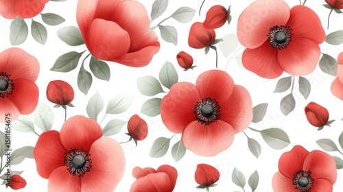 Fototapeta premium Seamless poppy flowers pattern, vibrant blossoms on a detailed background for...