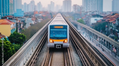 Fototapeta premium Seamless Public Transport in Bustling Asian Cityscape with Urban Harmony