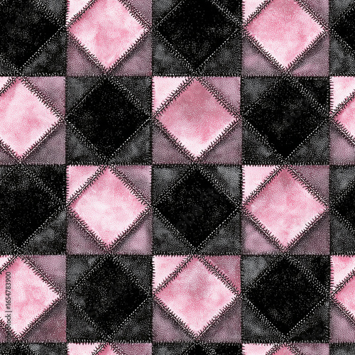 Obraz premium Seamless quilted leather pattern in black and pink diamond shapes with...