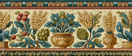 © Eduards V., Fototapeta premium Seamless renaissance border with wheat and fruit