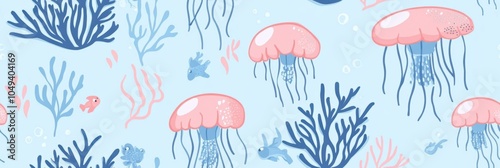 Naklejka premium Seamless repetitive pattern of beautiful jellyfish. Artistic illustration