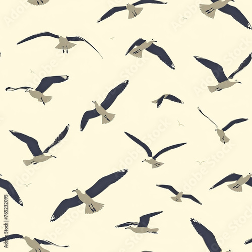 © Dominique, Fototapeta premium Seamless Seagull Pattern on Sky Blue