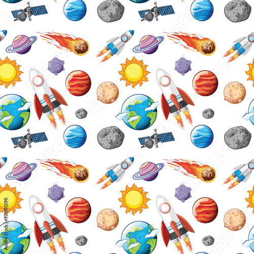 © blueringmedia, Naklejka premium Seamless Space Exploration Pattern
