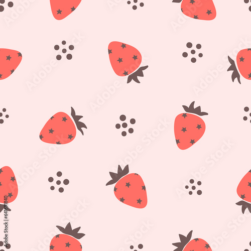 © Afanasia, Fototapeta premium Seamless strawberry pattern. Vector summer background with red berries and stars
