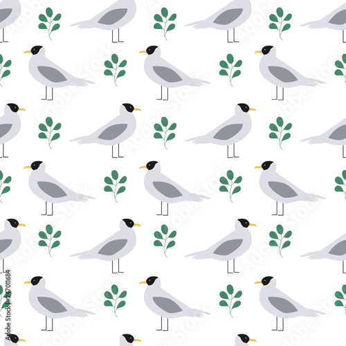 © anatartan, Obraz premium Seamless summer pattern with gull. Birds Scandinavian background.
