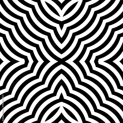 © funkyplayer, Obraz premium Seamless surface pattern design. Wavy ornament. Linear motif. Curly stripes. Waves backdrop. Repeated curves wallpaper. Abstract picture. Digital paper. Optical web designing.