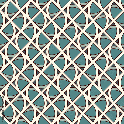 © funkyplayer, Naklejka premium Seamless surface pattern with abstract waves. Contemporary print with geometric forms. Modern ornament with triangles.