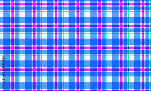 © Kashif, Fototapeta premium Seamless tartan plaid pattern. Checkered fabric texture print in stripes of blue, light blue and pink on dark royal blue background