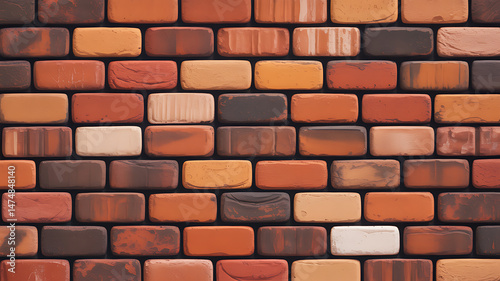 © Jamil, Fototapeta premium Seamless Texture of Varied Brown and Orange Bricks for Backgrounds and Designs