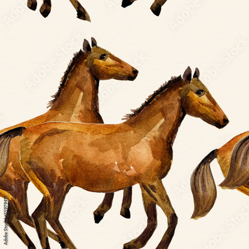 © Aloksa, Naklejka premium Seamless texture watercolor a horse