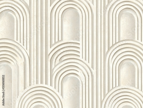 © Wimon, Naklejka premium Seamless thin silver lines forming an Art Deco-inspired grid over a warm ivory marble background