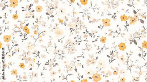 © Preawpairin, Obraz premium Seamless tileable minimalist floral pattern with delicate flowers and pastel colors
