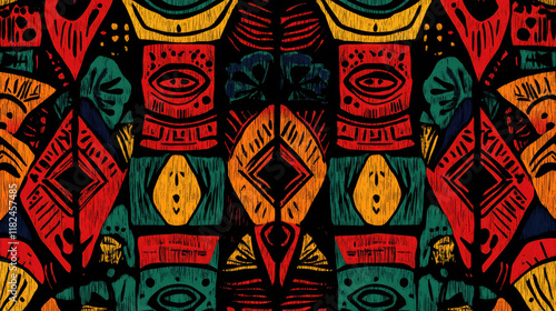 © Creative Valley, Fototapeta premium Seamless Tribal Pattern Featuring African Motifs: Black History Month