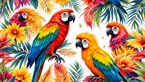 © THANAT SAINAK, Fototapeta premium Seamless Tropical Birds Pattern